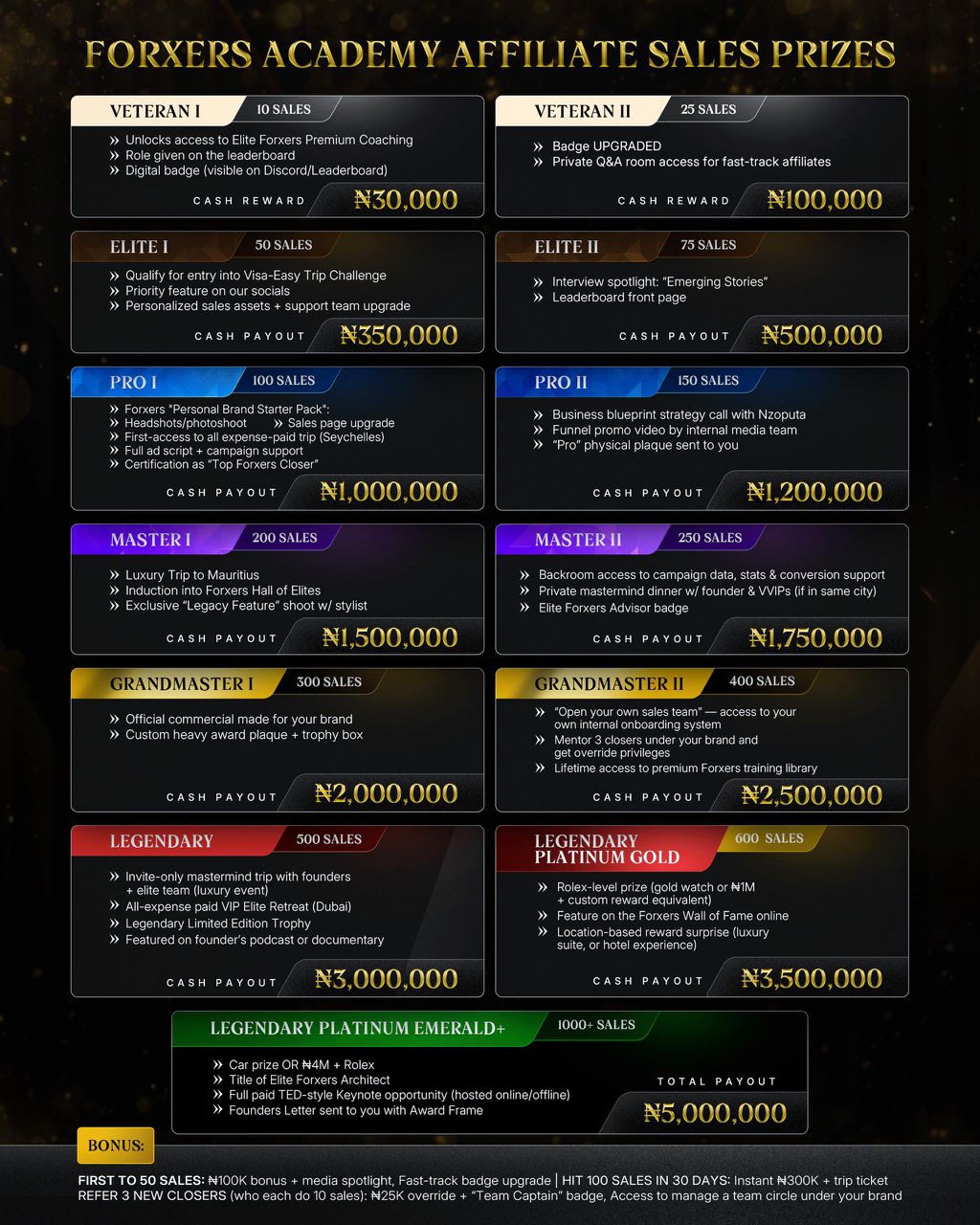 Exclusive access to mentorship, leaderboards, and cash SPIFFs — with rewards up to ₦5M, Dubai trips, and more.